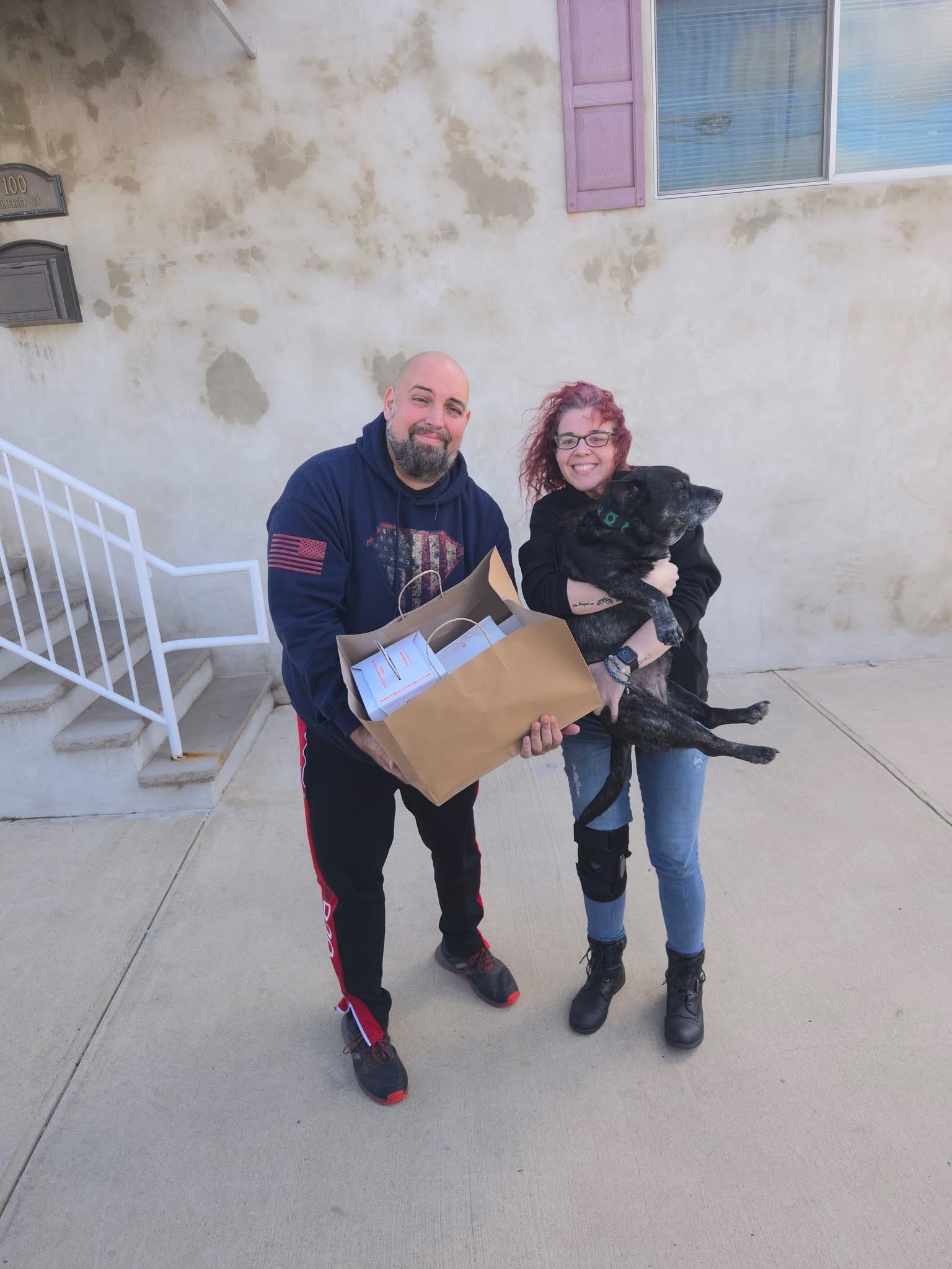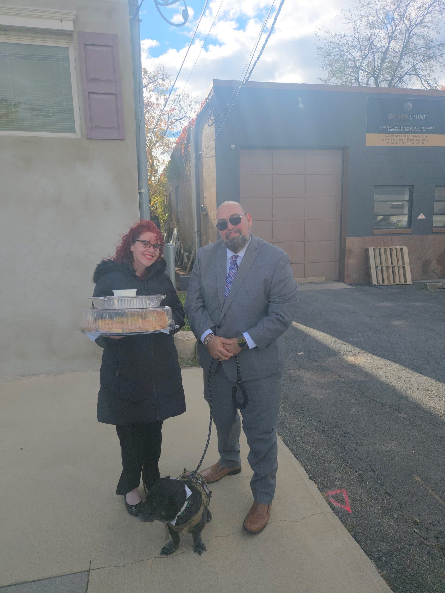 NJVN Outreach Director Doc Schupp, Jennifer Pietri and Shadow: America’s pup dropped off some food at one of the local veteran shelters recently.
