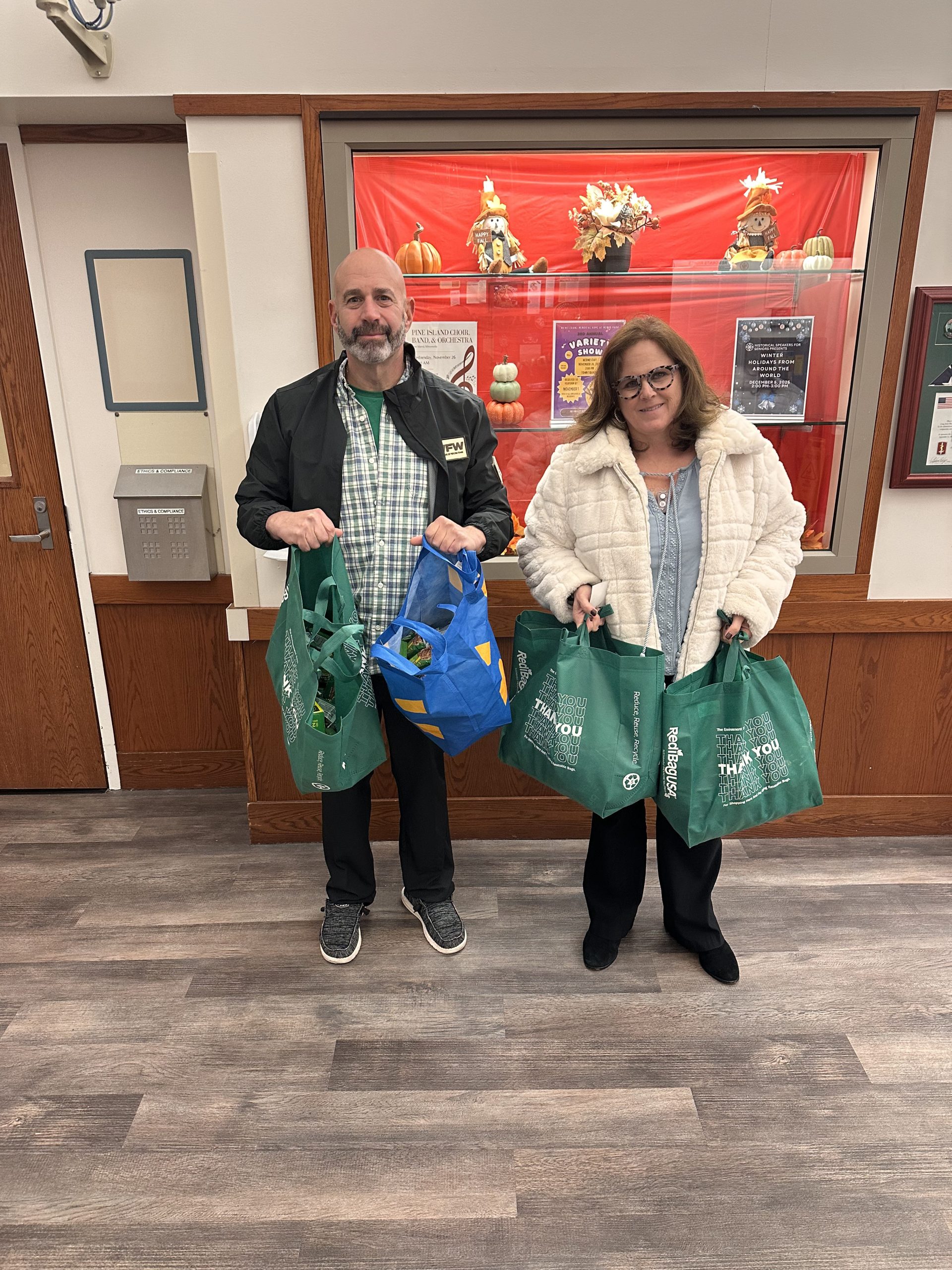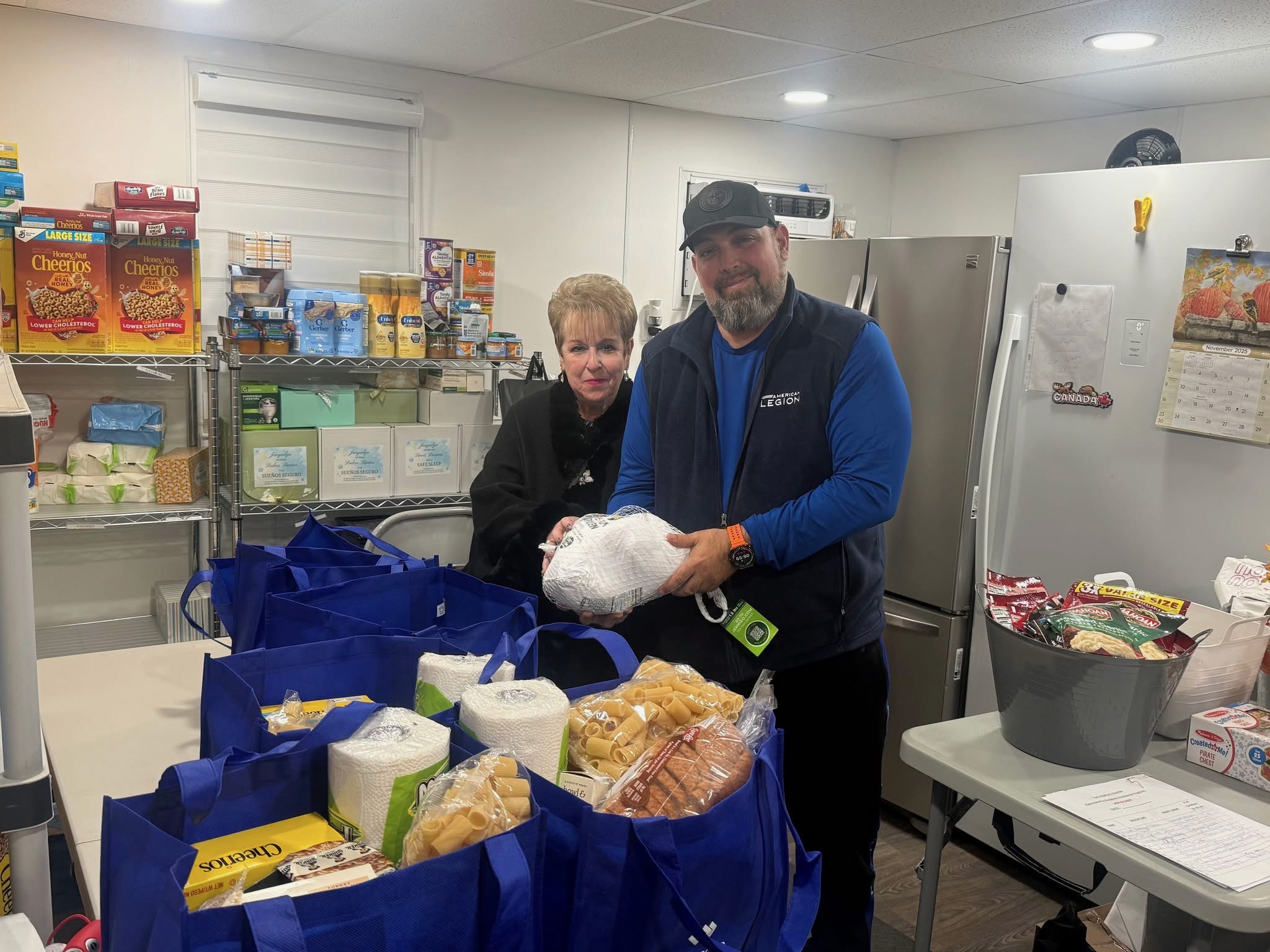 Shadow and Doc Schupp picked up some Thanksgiving turkey baskets which will be distributed from Naninas in the park food distribution.