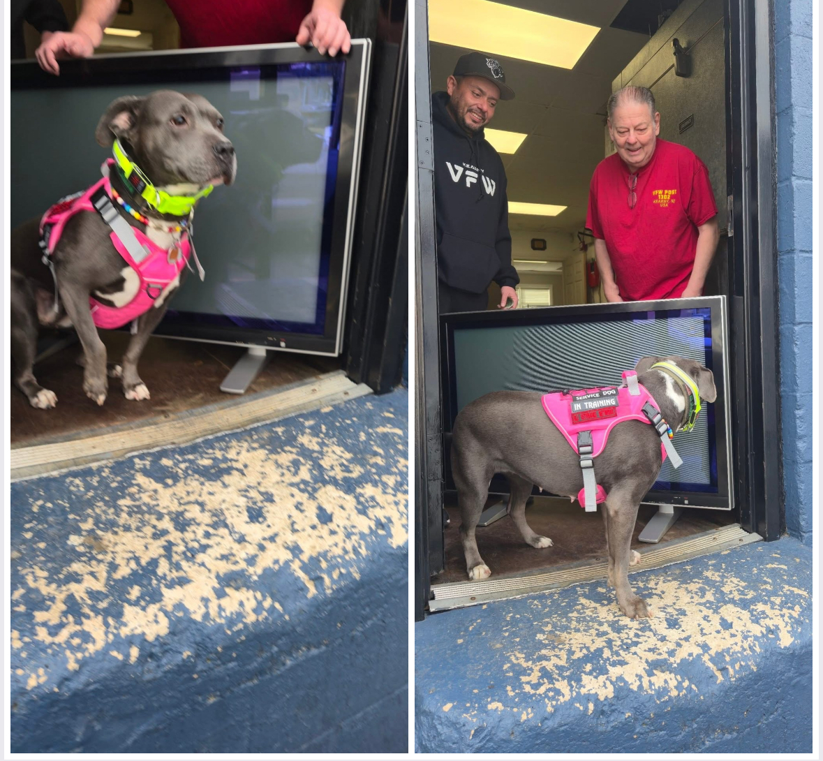 Team NJVN service dog in training Bella dropped off a big screen TV to the Kearny Veterans of Foreign Wars-VFW Post 1302!