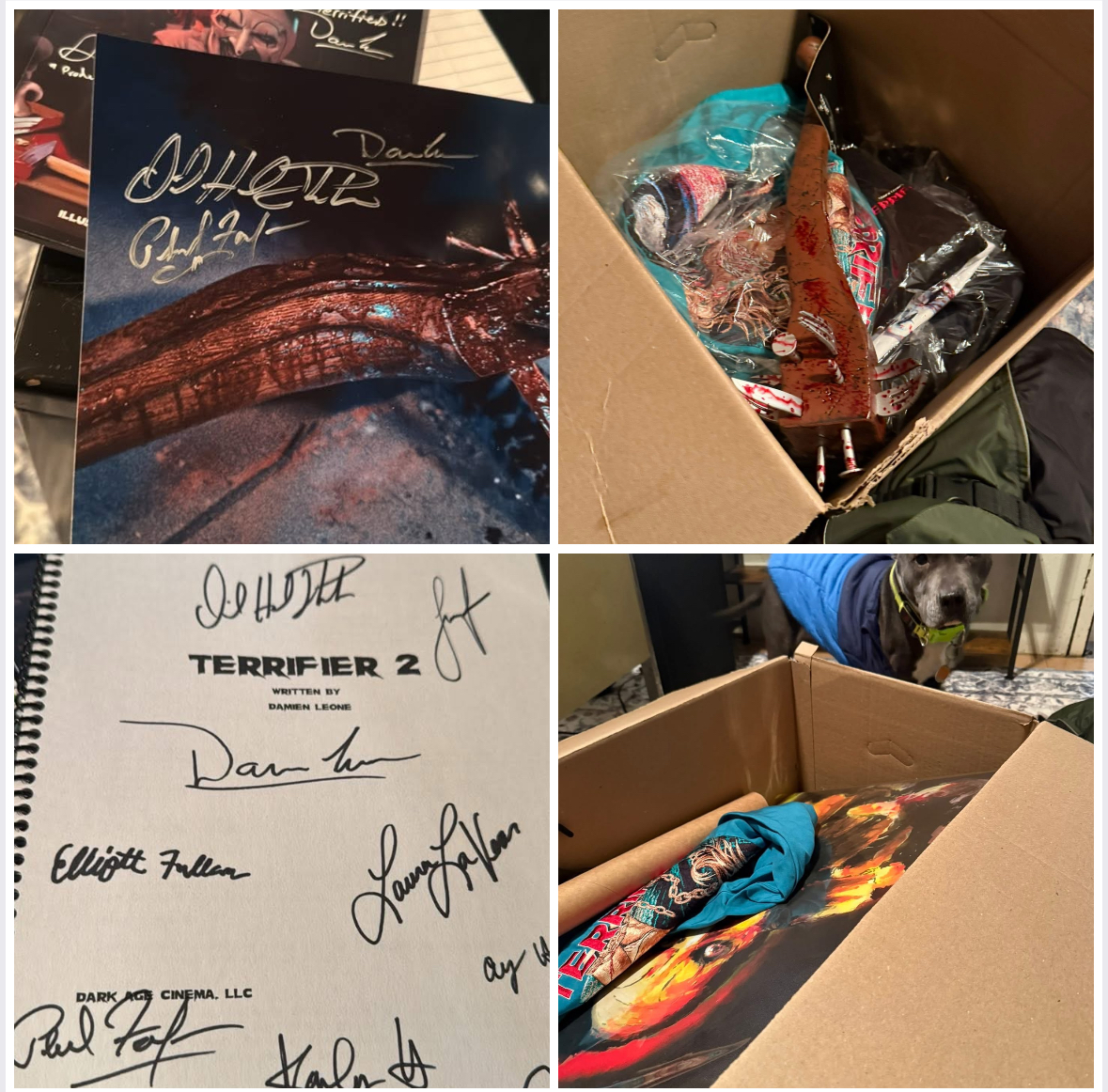 We received 2 large boxes of signed merchandise, donations and funding for our programs. We are preparing for an awesome Terrifier themed event coming up next month!